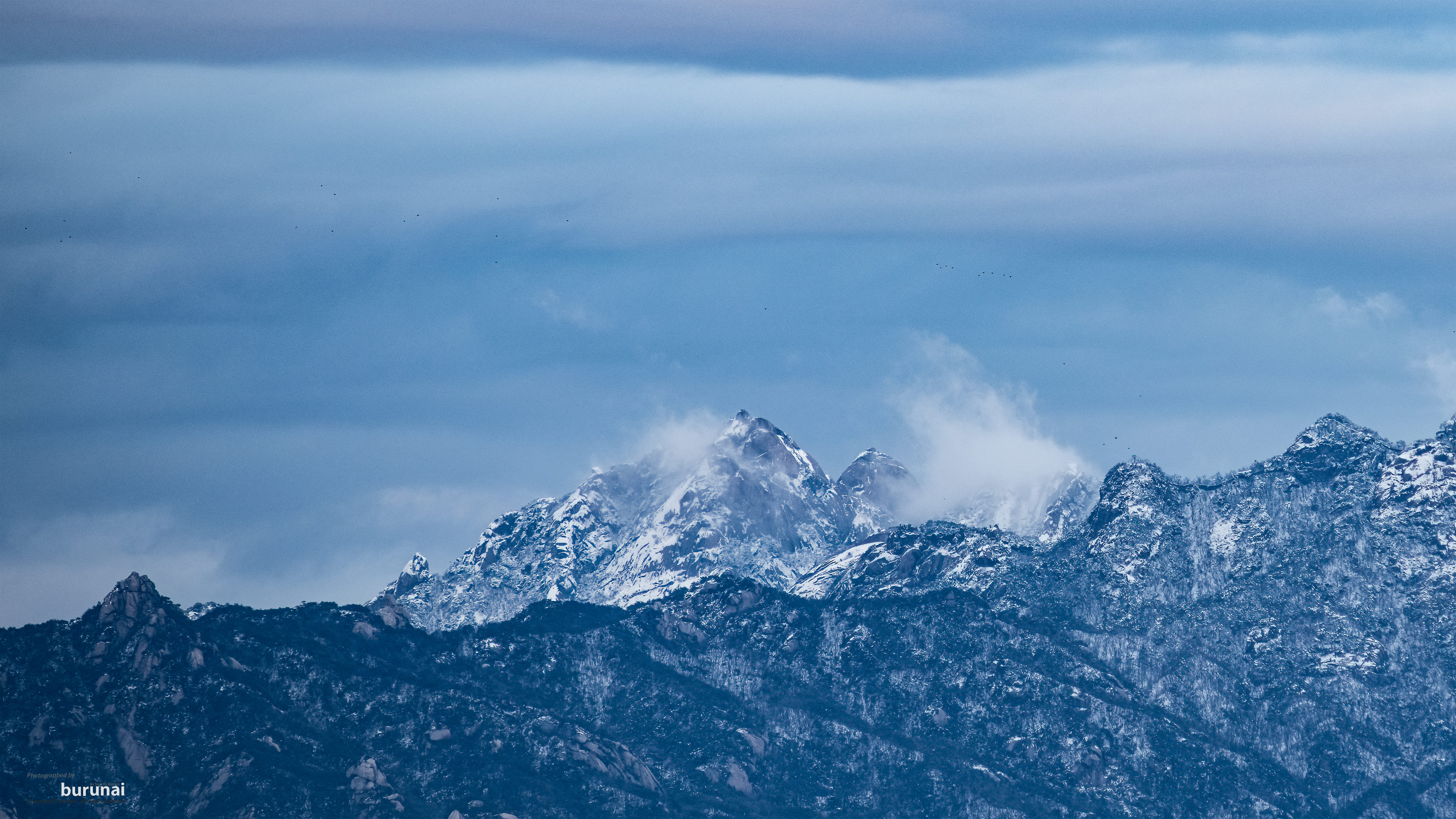 3월 중순을 넘어 하순으로 접어드는 시기에 구름이 거치면서 보여준 북악산의 겨울 눈풍경이 맑은날 보여줘서 인상에 남는다.